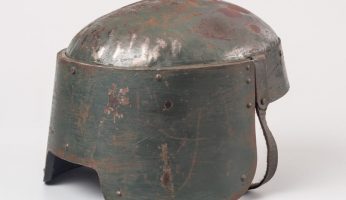 100 Dinge aus dem Museum.Objekt 18: Stahlhelm, inländisches Muster, Typ Berndorf. Überstrichen und weiter verwendet in der Zwischenkriegszeit, vermutlich Heimwehr.